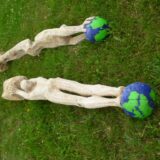 Meine künstlerische Darstellung – eine auf den Füßen und eine auf den Händen stehende mit dem Erdball in den Händen und auf den Füßen tragende Skulptur – möchte diesem existentiellen Thema Ausdruck verleihen:
