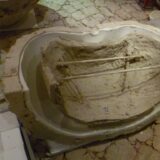 - Es entstehen drei Silikonformen mit den dazu passenden Stützformen aus Gips mit Eisenarmierung.