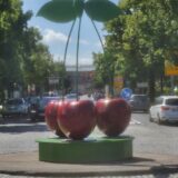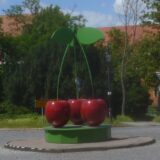 - Zuerst wird eine Kirsche aus Gips hergestellt. ( Höhe 80 cm)