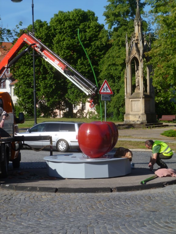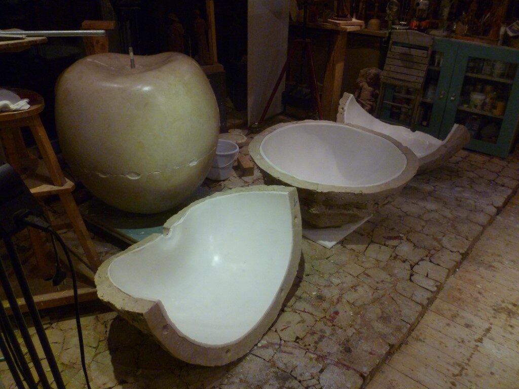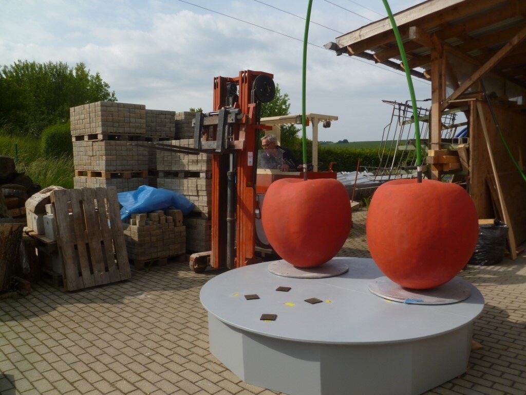 - Zuerst wird eine Kirsche aus Gips hergestellt. ( Höhe 80 cm)