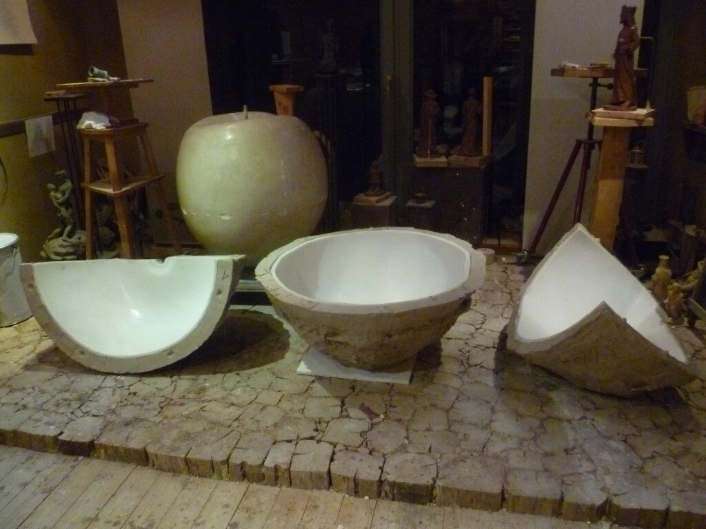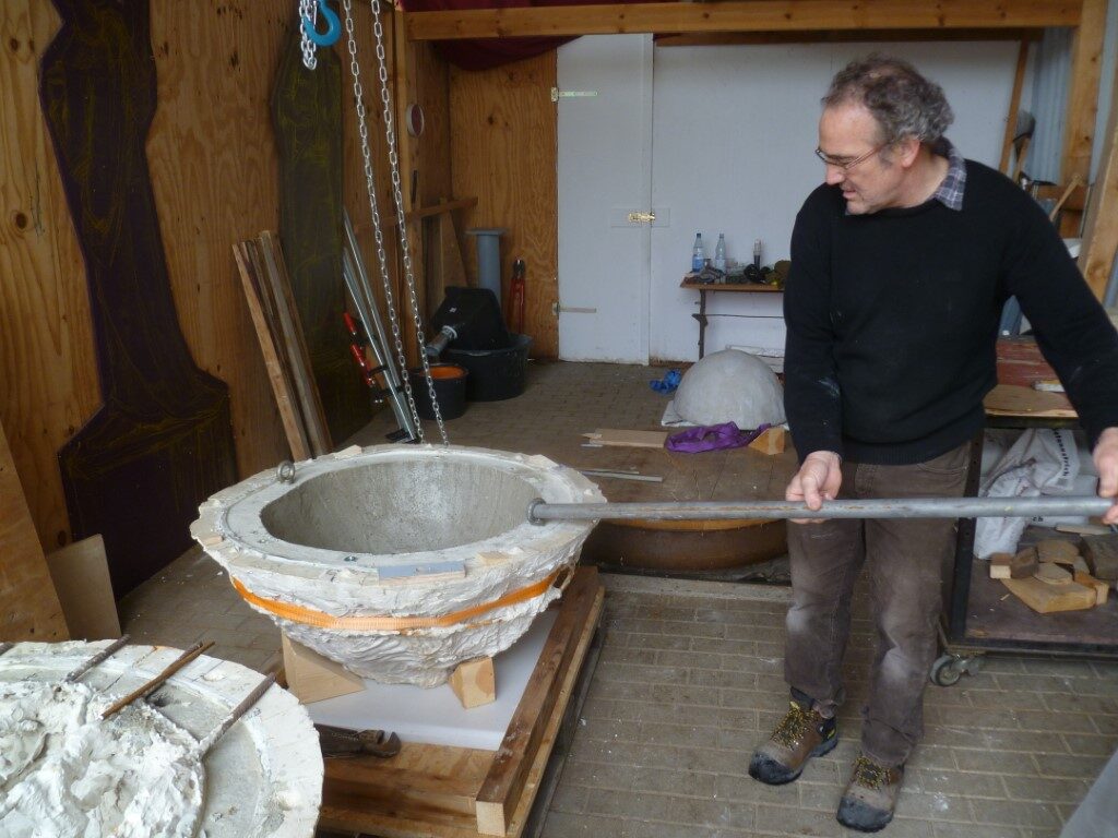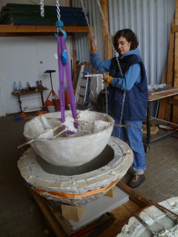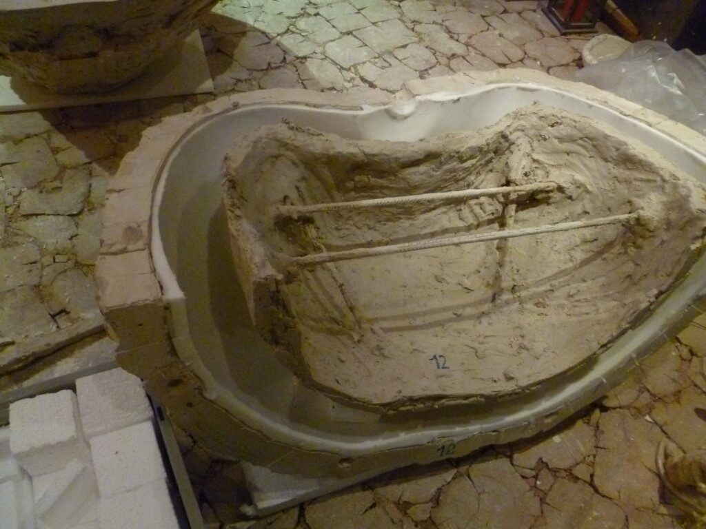 - Es entstehen drei Silikonformen mit den dazu passenden Stützformen aus Gips mit Eisenarmierung.